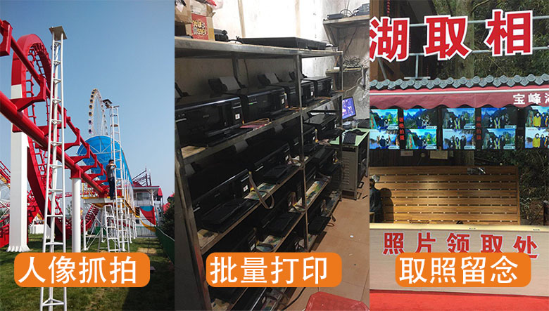以过山车为例,景区在这一项目中安装高速拍照打印系统,前端通过摄像头抓拍画面,后端服务器在接收照片以后即可现场打印,供游客挑选。